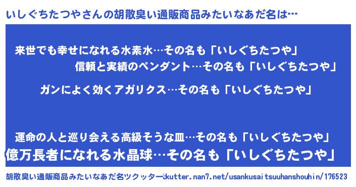| 男性向けラノベタイトル風あだ名 | 『はたらくいしぐちたつやさま!』 |
