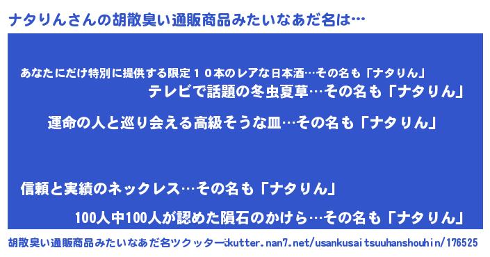 | ヒーロー風カッコイイあだ名 | 『ウルトラナタりんマン』『仮面ナタダー』 |