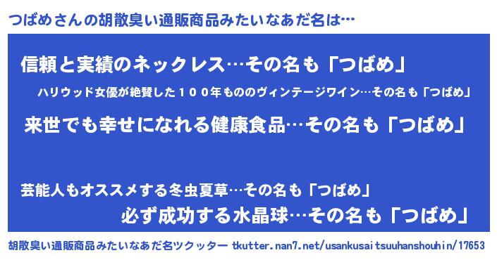 | ヘコむあだ名 | 『つばめ(爆)』『つば太郎』 |