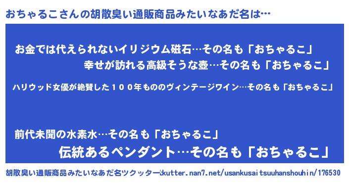 | ヒーロー風カッコイイあだ名 | 『仮面オチダー』『慈愛の使者おちゃるこ』 |