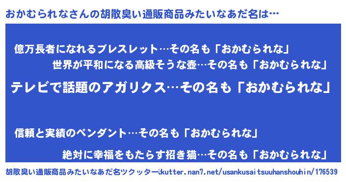 | ヘコむあだ名 | 『おかにゅー』『おかむられな(笑)』 |