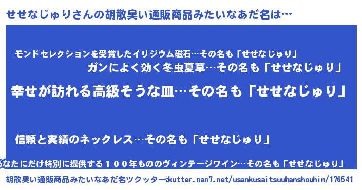 | ヒーロー風カッコイイあだ名 | 『ウルトラせせなじゅりマン』 |