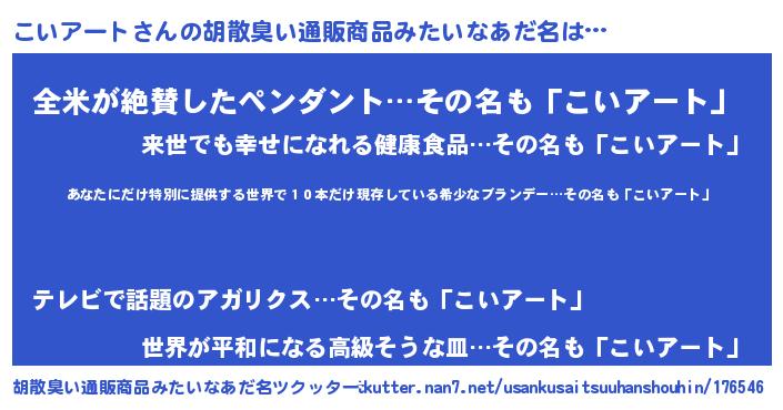 | 意味不明あだ名 | 『住所不定無職こいアート(85歳)』 |