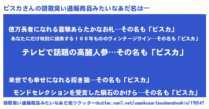 | 意味不明あだ名 | 『自称ピスカ』『ペロリンピスカ』 |