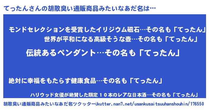 | 意味不明あだ名 | 『とにかく怪しいてったん』 |
