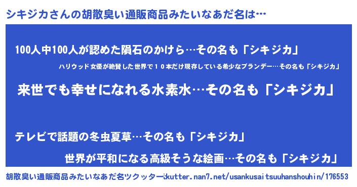 | 意味不明あだ名 | 『永久保存シキジカ』『自称シキジカ』 |