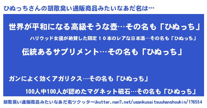 | ヘコむあだ名 | 『ひぬを』『なまこ酢』『ひぬにー』 |