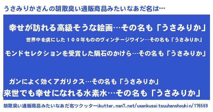 | ヘコむあだ名 | 『酢こんぶ』『うさみりか(笑)』 |