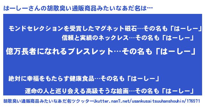| 自動車の名前っぽいあだ名 | 『ランハーギーニ』『ハーティマ』 |