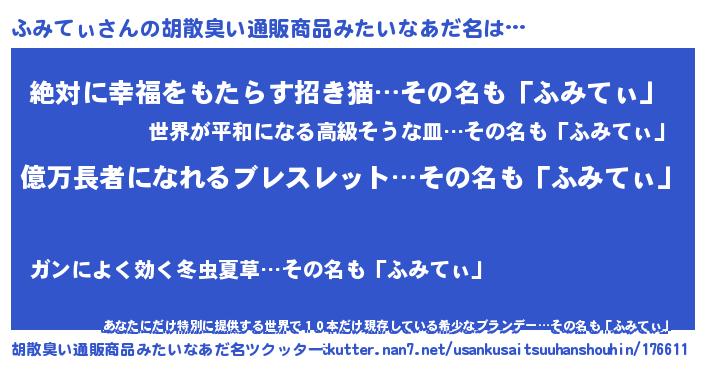 | ヘコむあだ名 | 『ふみにー』『ふみてぃ(小並感)』 |