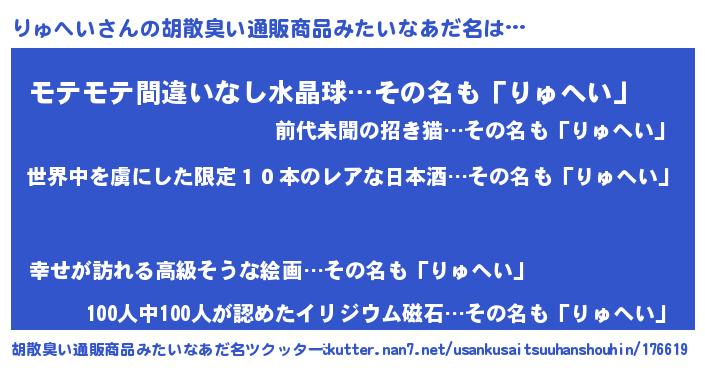 | 男性向けラノベタイトル風あだ名 | 『この素晴らしい世界にりゅへいを!』 |