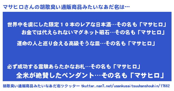 | 意味不明あだ名 | 『マサヒロフォーエバー』 |