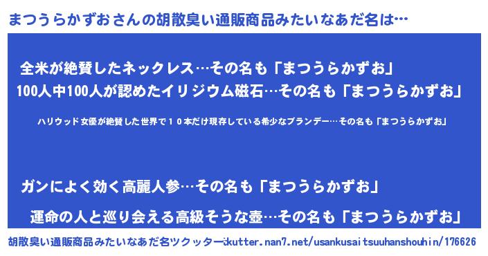| 意味不明あだ名 | 『住所不定無職まつうらかずお(89歳)』 |