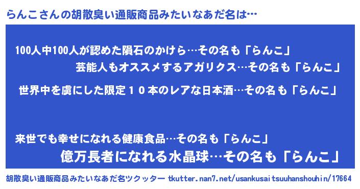 | ヘコむあだ名 | 『らんにゅー』『らんこ(震え声)』 |
