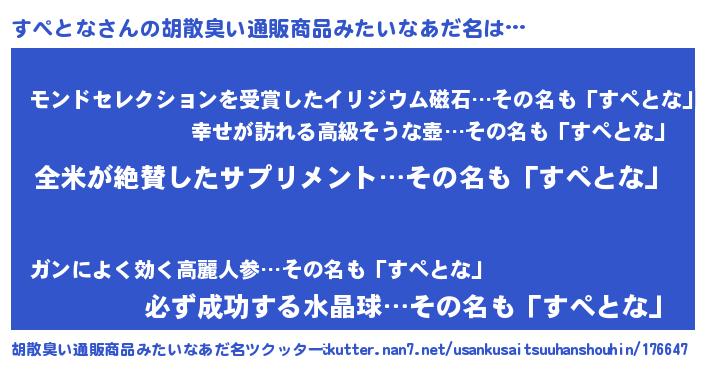 | 意味不明あだ名 | 『とにかく怪しいすぺとな』 |