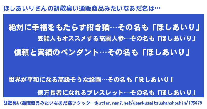 | ヘコむあだ名 | 『ほしっちょ』『ほしあいり(震え声)』 |