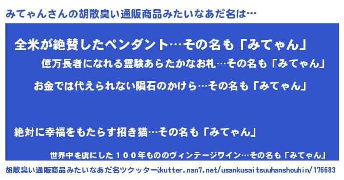 | ヘコむあだ名 | 『みてぷりん』『みてっふぃ~』 |