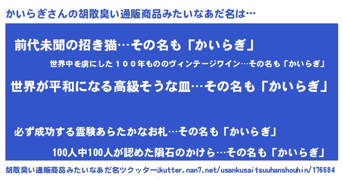 | ヒーロー風カッコイイあだ名 | 『ウルトラかいらぎマン』『ネオカイラギ』 |