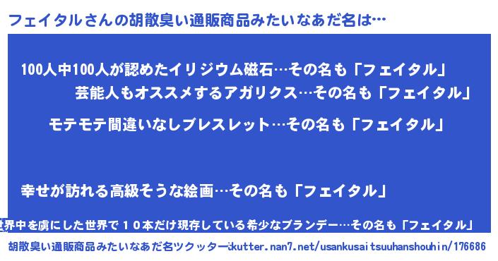 | 意味不明あだ名 | 『ペロリンフェイタル』『自称フェイタル』 |