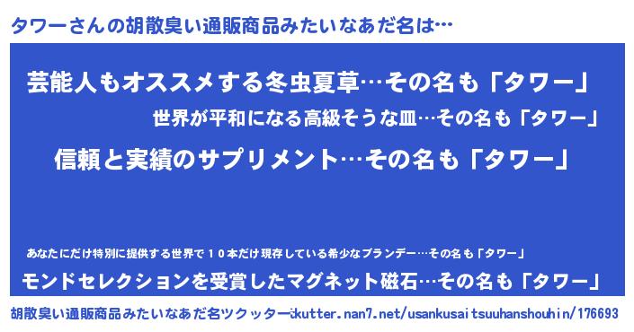 | 意味不明あだ名 | 『とにかく怪しいタワー』『自称タワー』 |