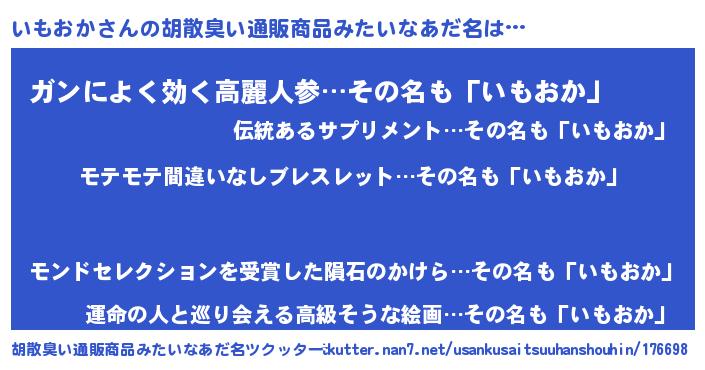 | 男性向けラノベタイトル風あだ名 | 『いもおかの憂鬱』 |