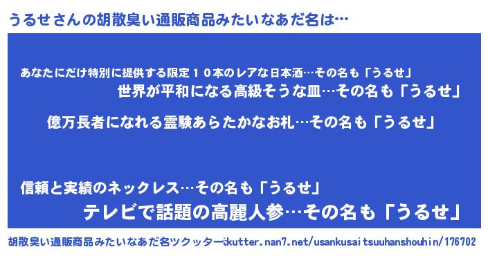 | ヘコむあだ名 | 『うるもー』『つくし』『うるお』 |