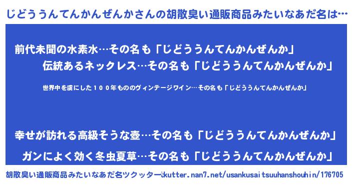 | 意味不明あだ名 | 『住所不定無職じどううんてんかんぜんか(1歳)』 |