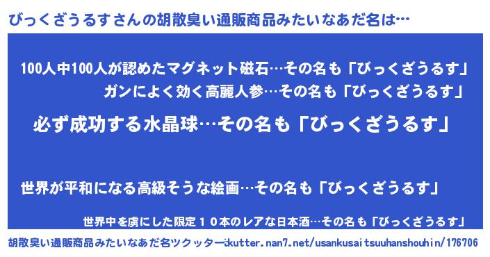 | 男性向けラノベタイトル風あだ名 | 『びっくざうるすの憂鬱』 |