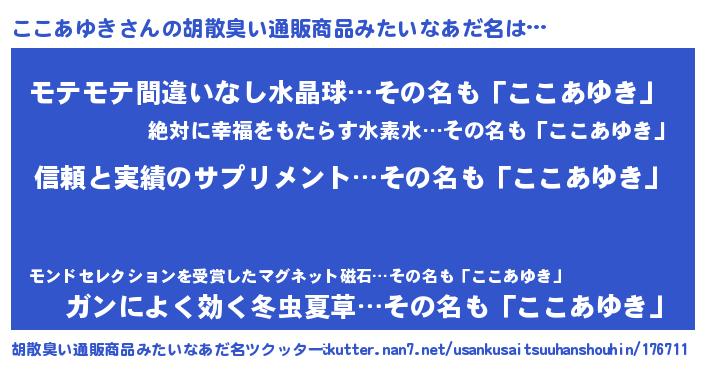 | 欧米人風あだ名 | 『アンジェラ・ここあゆき』 |