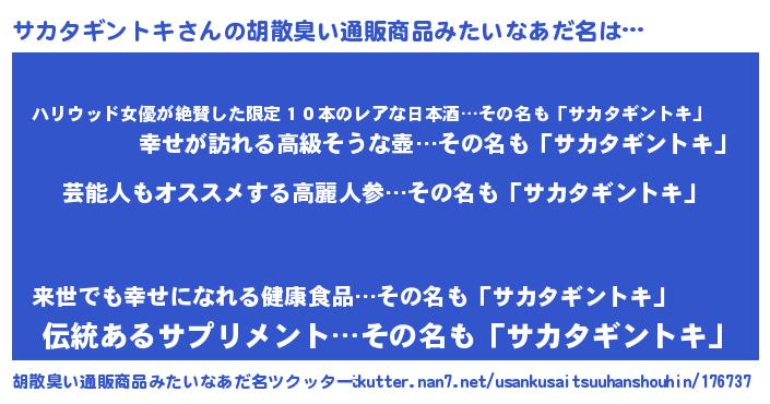 | 肩書あだ名 | 『サカタギントキ閣下』 |