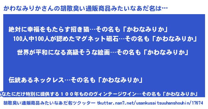 | 意味不明あだ名 | 『かわなみりかフォーエバー』 |
