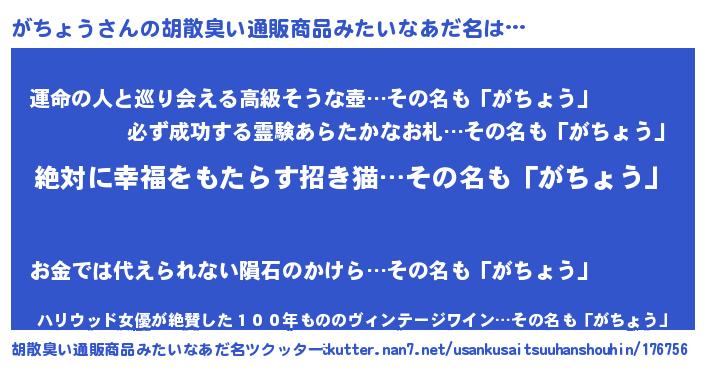| ヘコむあだ名 | 『がちょう(小並感)』『酢こんぶ』 |