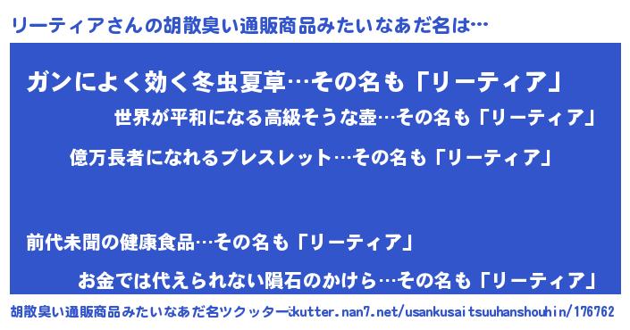 | 意味不明あだ名 | 『ペロリンリーティア』『自称リーティア』 |
