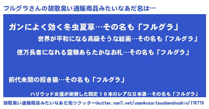 | ヒーロー風カッコイイあだ名 | 『スーパーフルグラ』『究極戦士フルグラ』 |