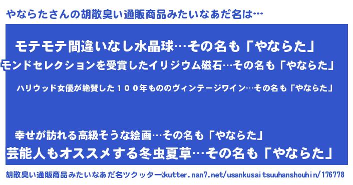 | 欧米人風あだ名 | 『ダレノガレやならた』 |