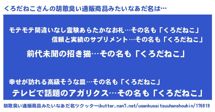 | 意味不明あだ名 | 『永久保存くろだねこ』『自称くろだねこ』 |