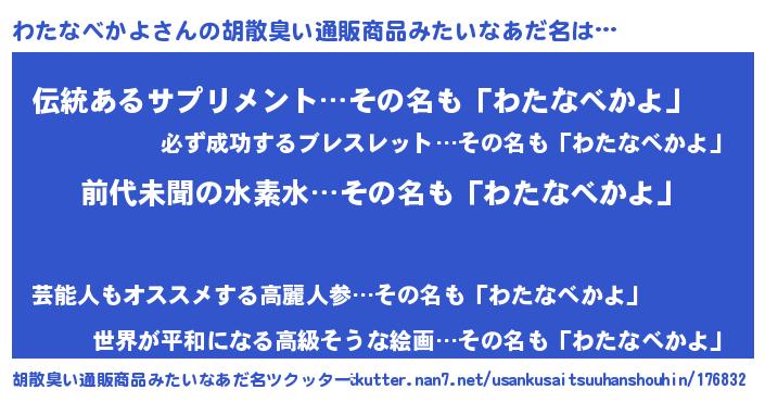 | ヘコむあだ名 | 『わたなべかよ(遠い目)』『わたお』 |