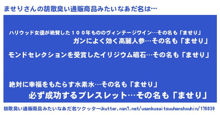 | ヘコむあだ名 | 『ませふぇ~』『ませり(笑)』 |