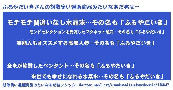 | ヘコむあだ名 | 『ふるにー』『ふるやだいき(笑)』 |
