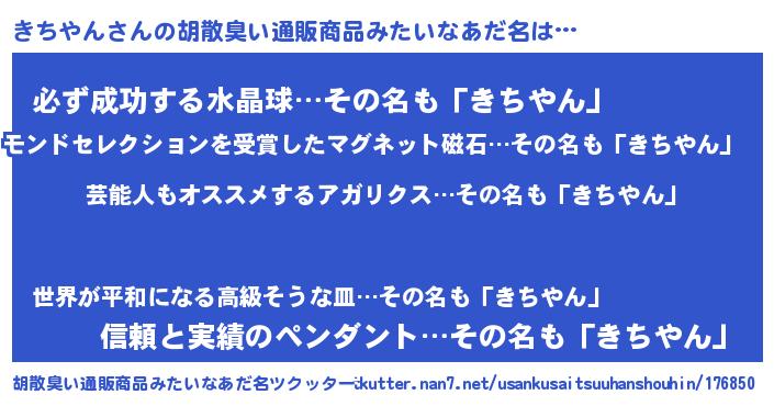 | 意味不明あだ名 | 『自称きちやん』『ペロリンきちやん』 |