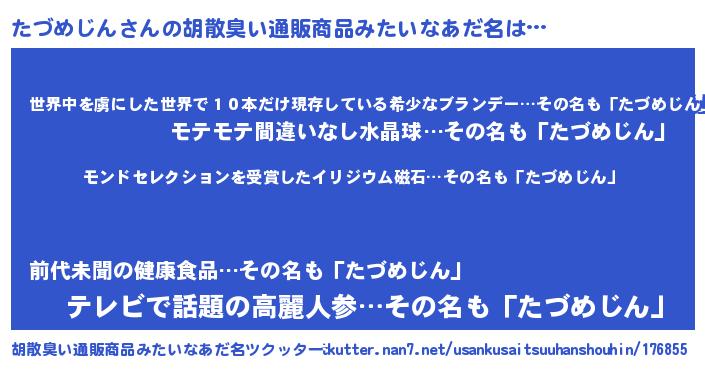 | ヘコむあだ名 | 『たづにゅー』『たづめじん(震え声)』 |