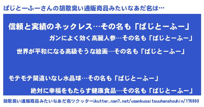 ばじとーふーさんの胡散臭い通販商品みたいなあだ名をツクッター!