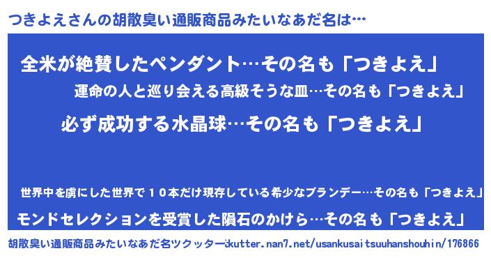 | ヘコむあだ名 | 『つきにゅー』『つき太郎』『つくし』 |