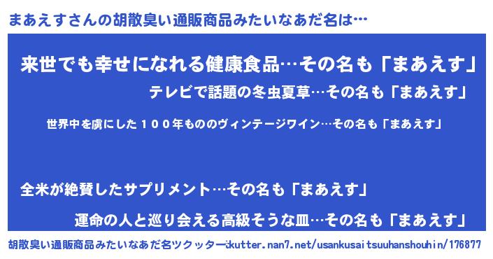 | 意味不明あだ名 | 『住所不定無職まあえす(3歳)』 |