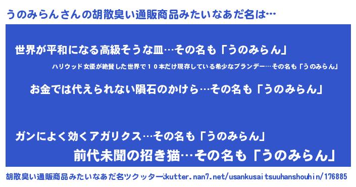 | ヒーロー風カッコイイあだ名 | 『愛の使者うのみらん』『ネオウノミラン』 |