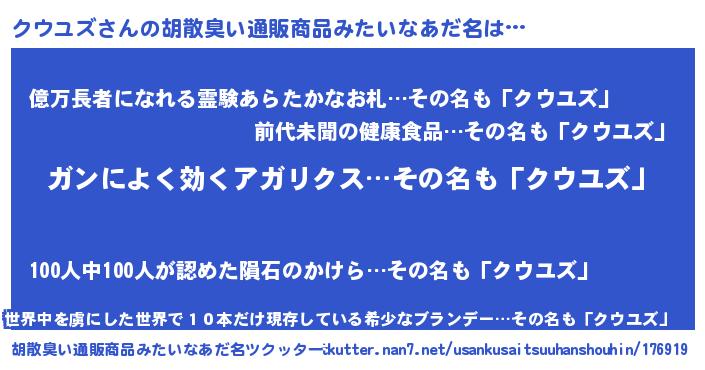 | ヘコむあだ名 | 『クウにゅー』『クウユズ(遠い目)』 |