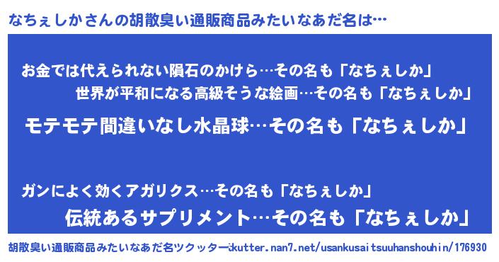 | ヘコむあだ名 | 『なちにゅー』『なちぷりん』 |