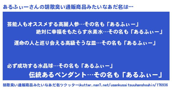 | ファンタジー風あだ名 | 『エターナルアルフィーー』『ゼアルトゥ』 |