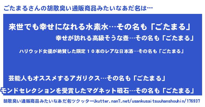 | ヘコむあだ名 | 『ごたまる(笑)』『豆乳』『ごたもー』 |