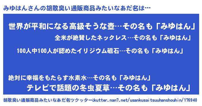 | 意味不明あだ名 | 『眠気覚ましガムみゆはん味』 |